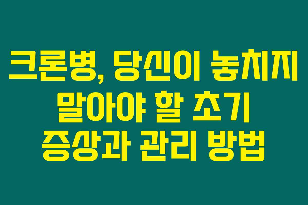 마무리하자면, 크론병은 만성 질환이지만 조기 발견과 관리로 삶의 질을 높일 수 있습니다. 저는 여러분들이 작은 신호를 놓치지 않기를 바라며, 잘 관리하여 행복한 일상을 누리시길 바랍니다.