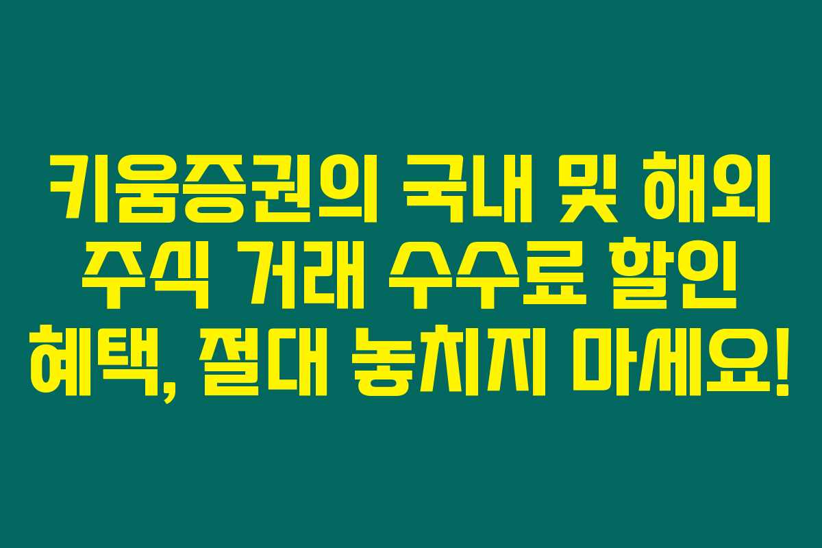 키움증권의 국내 및 해외 주식 거래 수수료 할인 혜택, 절대 놓치지 마세요!