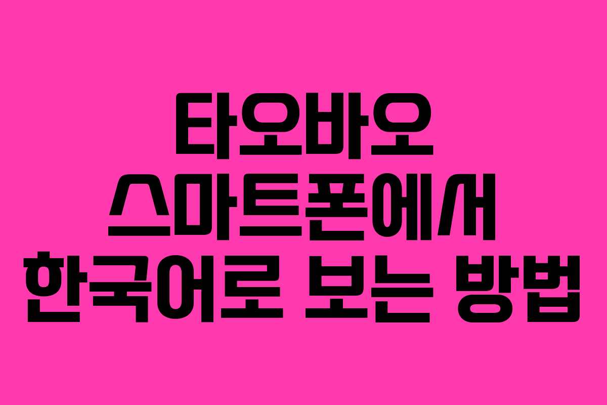 타오바오를 스마트폰에서 한국어로 쉽게 이용할 수 있는 방법들을 알아보았습니다. 자신에게 맞는 방법을 선택하여 즐거운 쇼핑을 경험하시길 바랍니다.