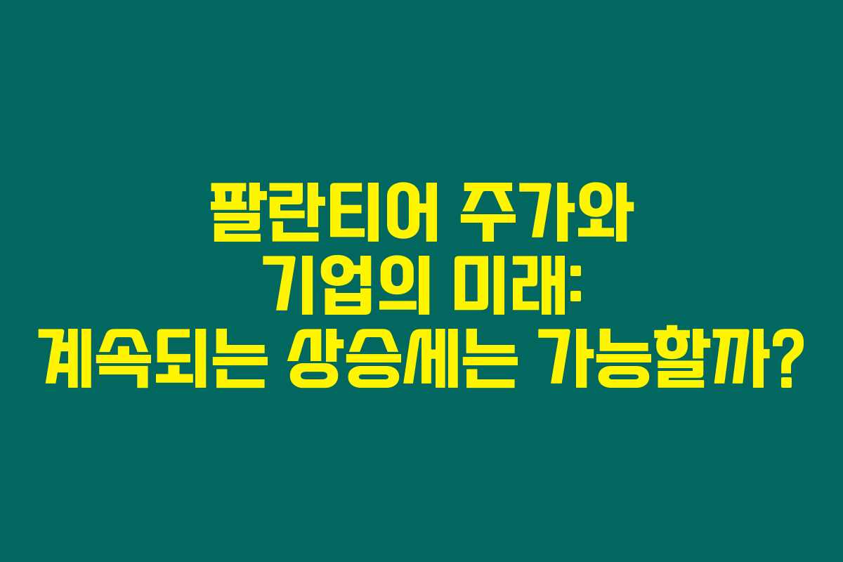 팔란티어 주가와 기업의 미래: 계속되는 상승세는 가능할까?