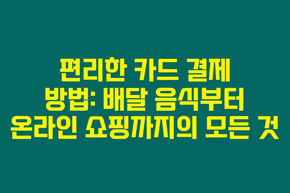 제가 직접 경험해본 결과로는, 카드 결제는 요즘 매우 다양한 방법으로 이루어지고 있어요. 특히, 배달 음식 주문이나 온라인 쇼핑 같은 일상적인 상황에서 활용도가 매우 높습니다. 아래를 읽어보시면 카드 결제의 다양한 방법과 주의사항들을 알 수 있을 거예요.
