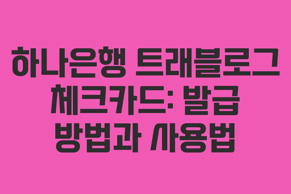 하나은행 트래블로그 체크카드: 발급 방법과 사용법