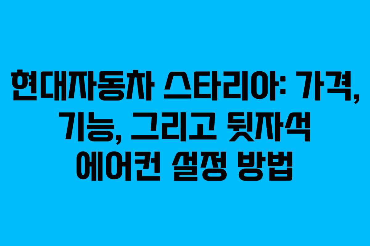 현대자동차 스타리아: 가격, 기능, 그리고 뒷자석 에어컨 설정 방법