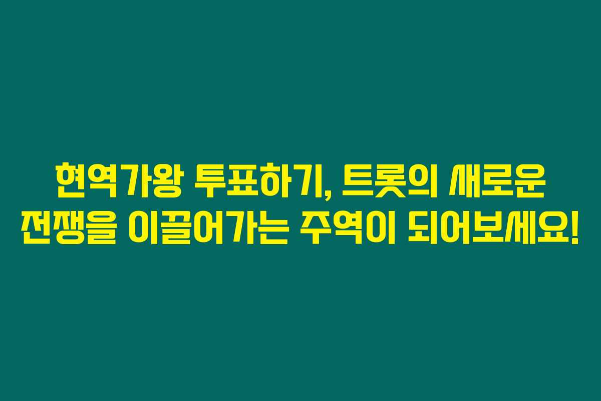 현역가왕은 이미 트롯 팬들 사이에서 큰 화제를 모으고 있어요. 타 프로그램과는 달리 국내 최정상급 현역 가수들만이 참여하기 때문에 그 경쟁이 불꽃 튀고요. 11월 28일 첫 방송이 되니까, 이 전쟁에 참여할 준비가 되었나요? 아래를 읽어보시면 투표 방법과 프로그램의 매력을 한눈에 알아볼 수 있을 거예요!