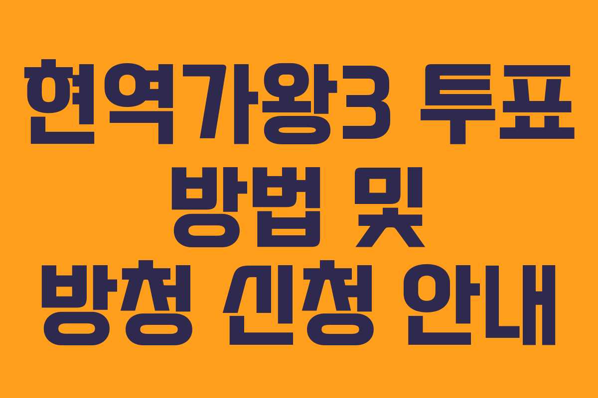 ‘현역가왕3’의 방청 신청은 공식 홈페이지를 통해 가능합니다. 방청을 원하는 팬들은 사전 신청을 통해 현장 관람의 기회를 얻을 수 있으며, 추첨을 통해 선발됩니다.