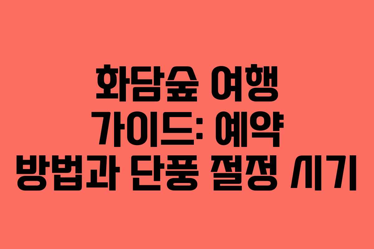 가을이 다가오면 많은 이들이 단풍 구경을 위해 여행 계획을 세우게 됩니다. 그중에서도 화담숲은 가까운 거리에서 아름다운 단풍을 감상할 수 있는 명소로 추천할 만합니다. 이 글에서는 화담숲의 예약 방법, 단풍 절정 시기, 그리고 근처 맛집인 퍼들하우스에 대해 알아보겠습니다.
