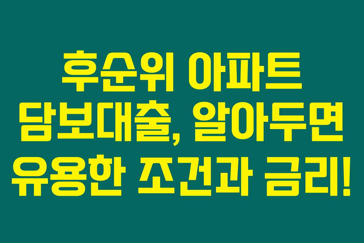 후순위 아파트 담보대출을 고민하고 계신가요? 매달 대출 상환이 부담스럽거나 추가 자금이 필요하다면 이 포스팅에서 알려드리는 조건과 금리에 대해 주목해보셔야 해요. 후순위 담보대출은 기존에 대출이 있는 경우 유용하게 사용될 수 있는 금융 상품이랍니다. 아래를 읽어보시면, 후순위 아파트 담보대출의 주요 조건과 금리를 꼼꼼하게 확인할 수 있어요!