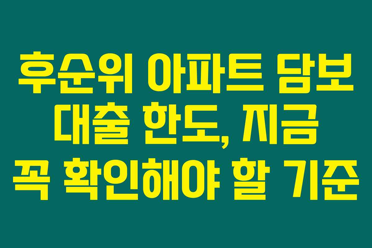 후순위 아파트 담보 대출 한도, 지금 꼭 확인해야 할 기준