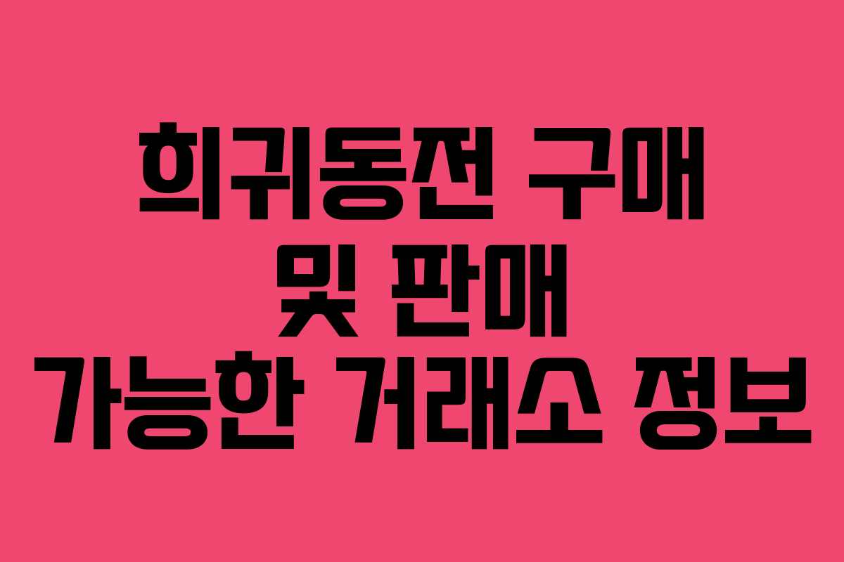 희귀동전 수집은 많은 이들에게 흥미로운 취미이자 투자 수단으로 자리잡고 있습니다. 이 글에서는 희귀동전의 구매 및 판매가 가능한 거래소에 대해 자세히 알아보겠습니다.