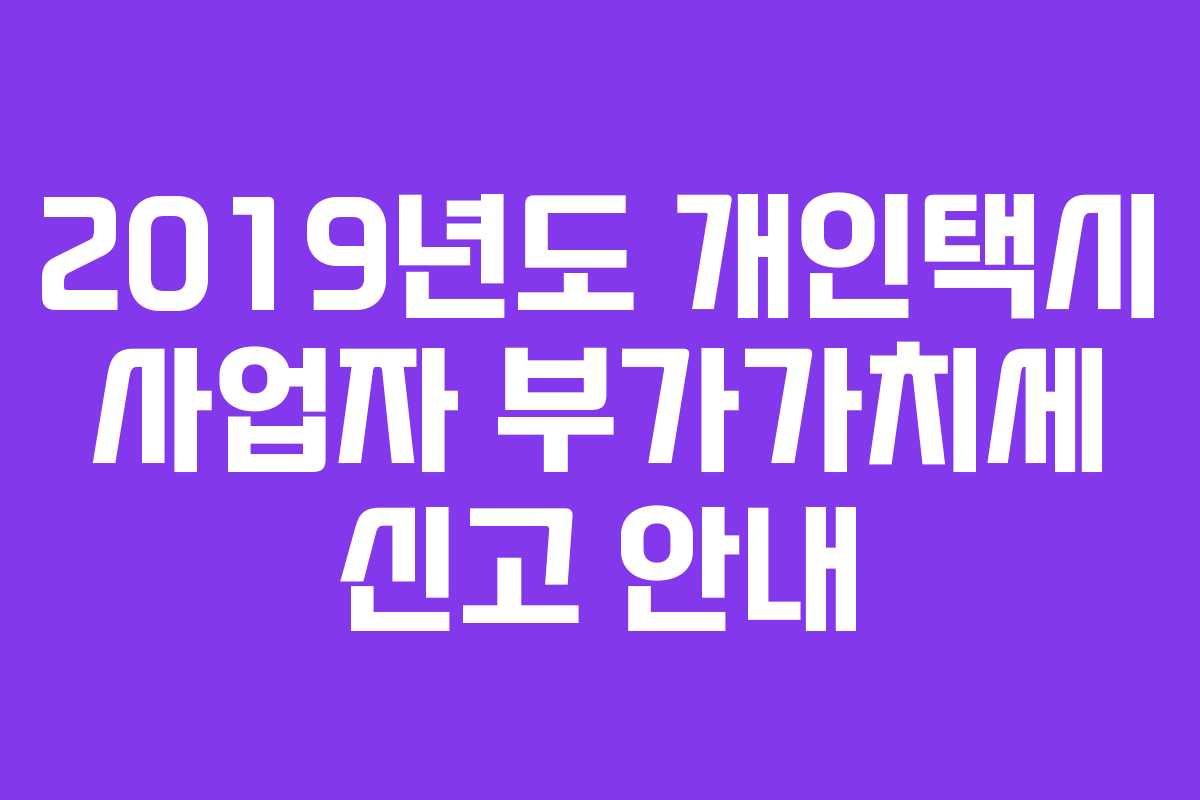 2019년도 개인택시 사업자 부가가치세 신고에 대한 정보를 안내드립니다. 이번 안내는 세무사 위탁 조합의 일괄신고와 조합원 개별 직접신고로 나누어 진행되니, 해당 내용을 숙지하시어 원활한 신고를 하시기 바랍니다.