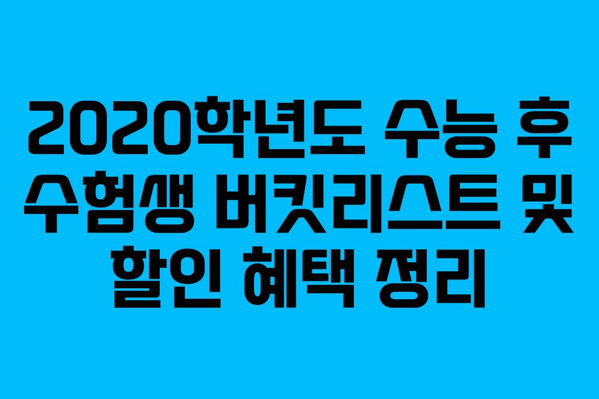 2020학년도 수학능력시험을 치르신 수험생 여러분, 고생 많으셨습니다. 수능을 마치고 나면 하고 싶었던 일들을 실천할 준비가 되었을 것입니다. 이번 포스트에서는 수능 후 즐길 수 있는 버킷리스트와 함께 수험생 할인 혜택에 대해 알아보겠습니다.
