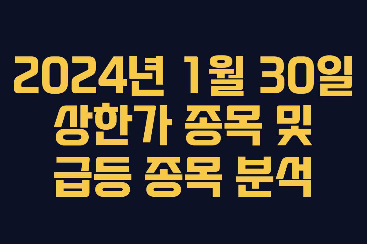 2024년 1월 30일 주식 시장에서 상한가에 오른 종목들과 급등 종목들을 살펴보겠습니다. 이 날 상한가를 기록한 기업들은 긍정적인 뉴스와 함께 투자자들의 관심을 받으며 주가가 급등했습니다.
