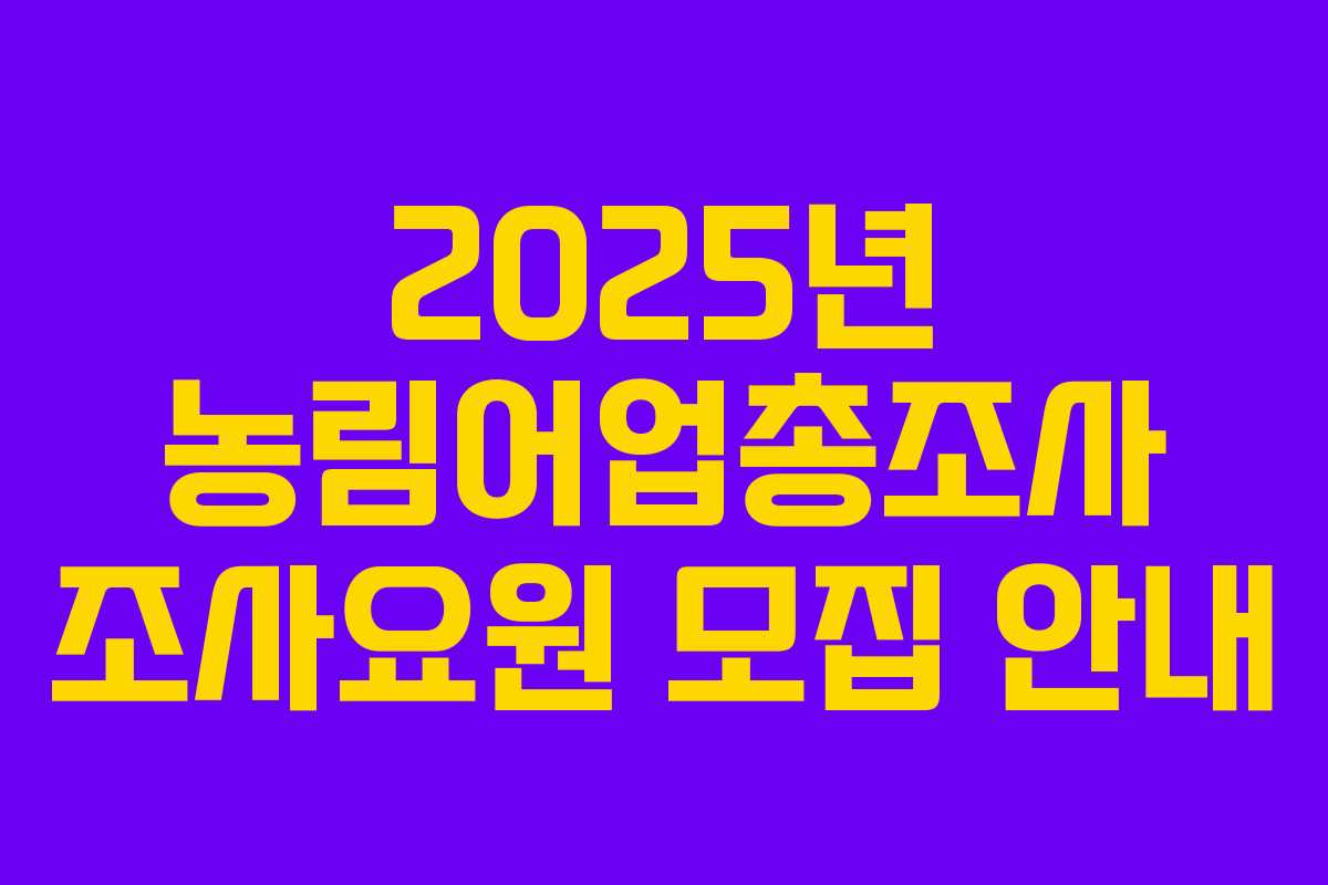 2025년 농림어업총조사에 참여할 조사요원 모집이 시작되었습니다. 이번 조사는 대한민국의 농림어업 현황을 파악하고, 국가 정책 수립에 기여하는 중요한 역할을 합니다.