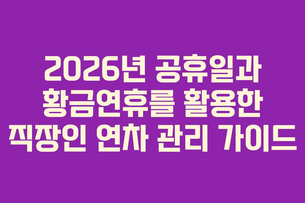 2026년이 다가오면서 많은 직장인들이 연휴 계획을 세우기 시작합니다. 각종 휴일은 업무에 지친 분들에게 소중한 시간입니다. 특히 이러한 기간을 잘 활용하면 연차를 효율적으로 소모하면서도 긴 휴식을 취할 수 있습니다. 이번 포스팅에서는 2026년 공휴일과 황금연휴를 활용한 연차 관리 전략을 정리해 보았습니다.