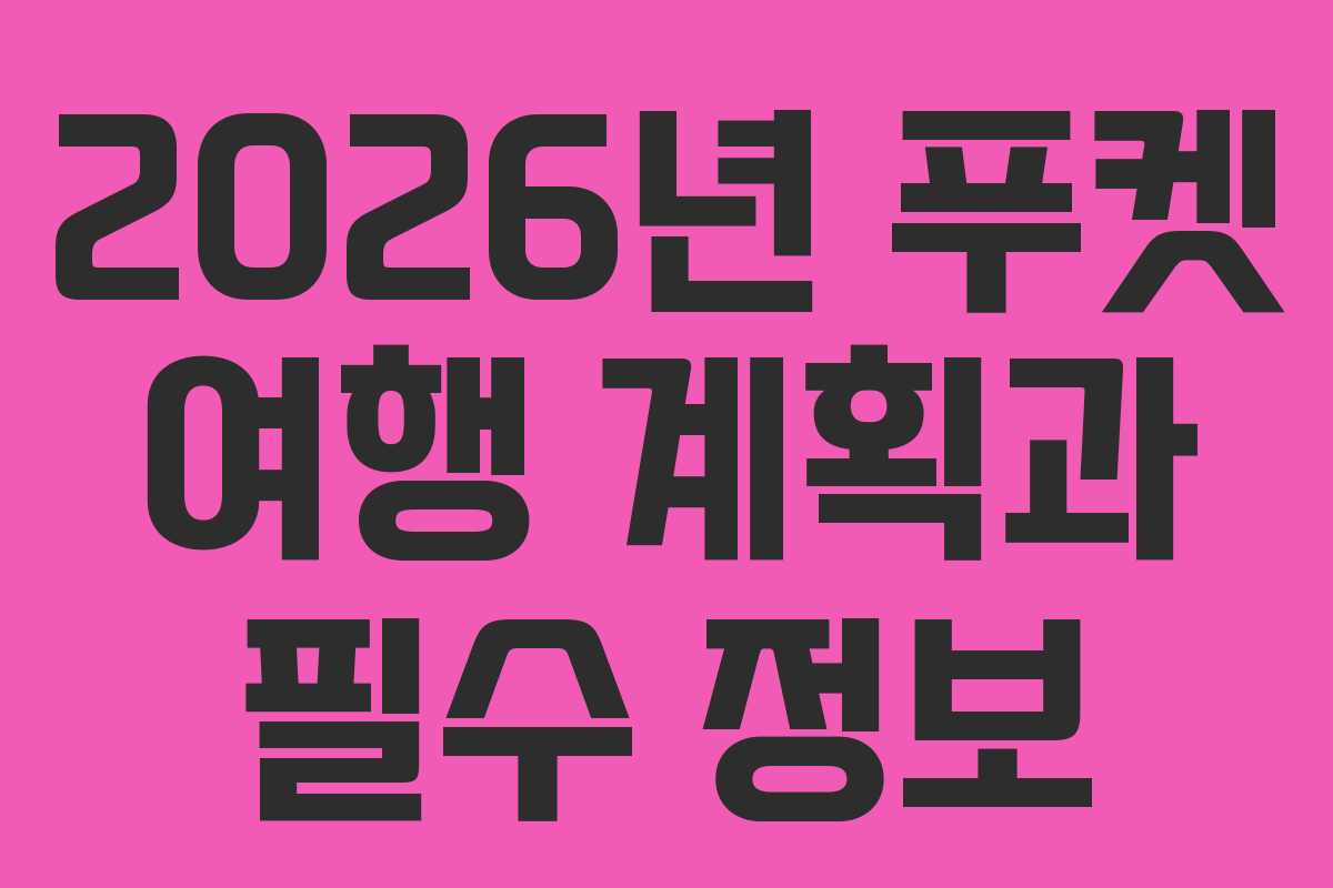 2026년, 태국 푸켓은 여전히 매력적인 여행지로 많은 이들의 사랑을 받고 있습니다. 푸켓은 아름다운 해변과 다양한 액티비티로 유명하며, 이곳에서의 여행은 잊을 수 없는 추억을 선사할 것입니다. 이번 글에서는 푸켓 여행을 준비하는 데 필요한 정보와 2026년 기준의 최신 사항들을 담아 보았습니다.
