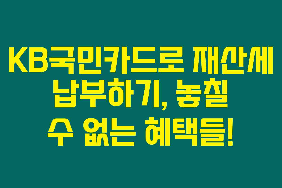 재산세는 매년 정해진 시기에 납부해야 하는 의무가 있습니다. 따라서 KB국민카드를 이용하여 조금이라도 금전적인 혜택을 누릴 수 있는 좋은 기회를 놓치지 마시길 추천드려요. 많은 분들이 잘 모르는 정보니까 활용하시길 바라요!