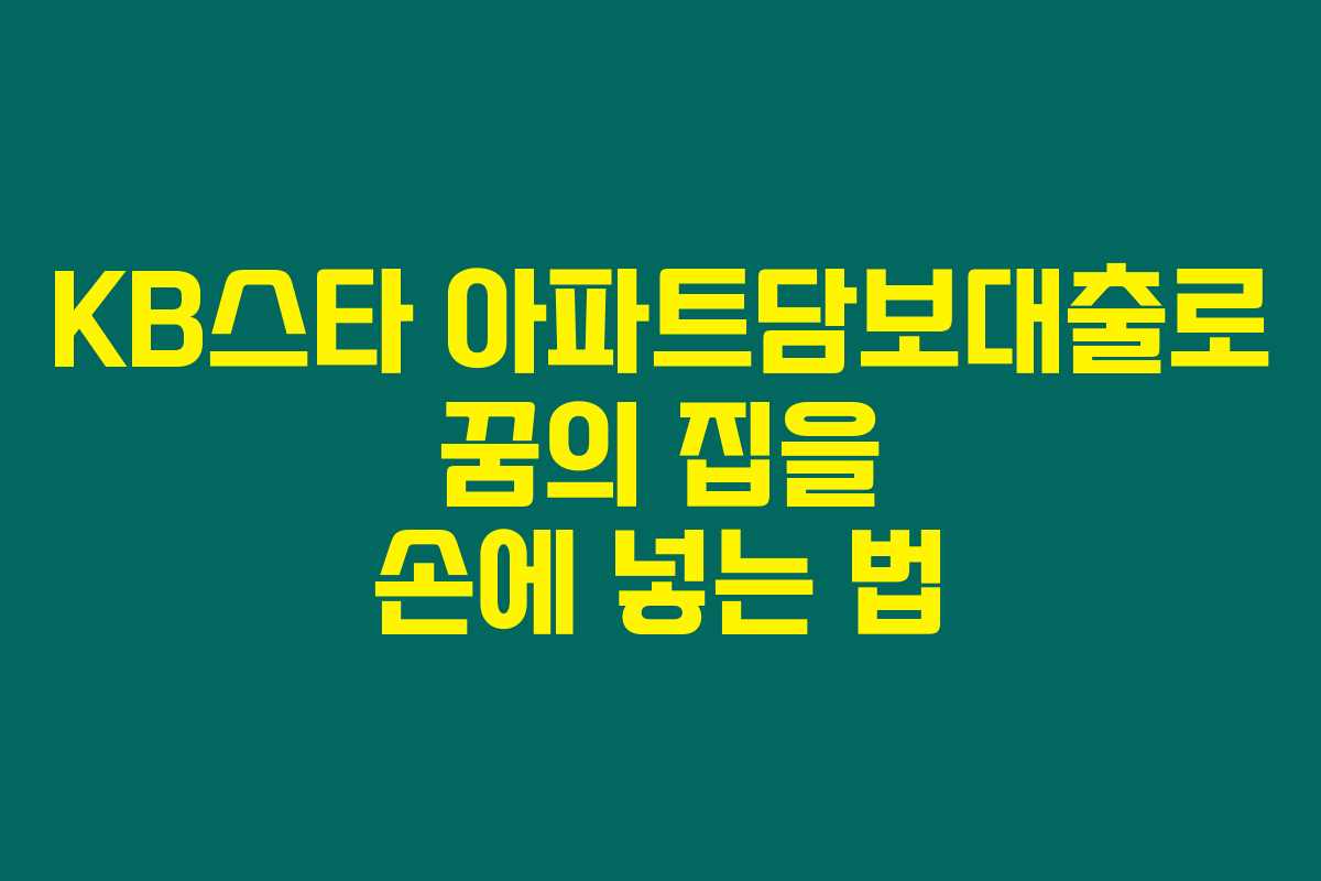KB스타 아파트담보대출로 꿈의 집을 손에 넣는 법