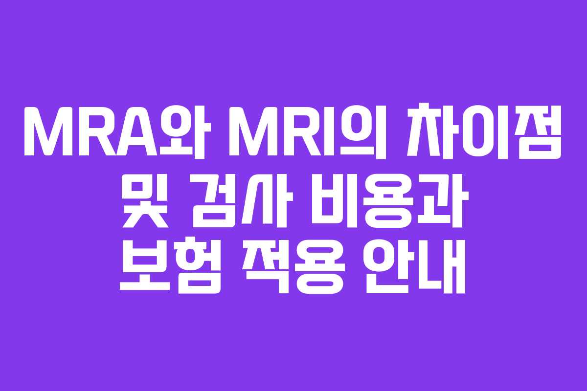병원에서 MRA 검사를 권장받았을 때, 많은 분들이 MRI와의 차이를 궁금해하실 것입니다. 이번 글에서는 MRA와 MRI의 특징, 검사 비용, 보험 적용 여부 등을 종합적으로 정리해 보겠습니다.