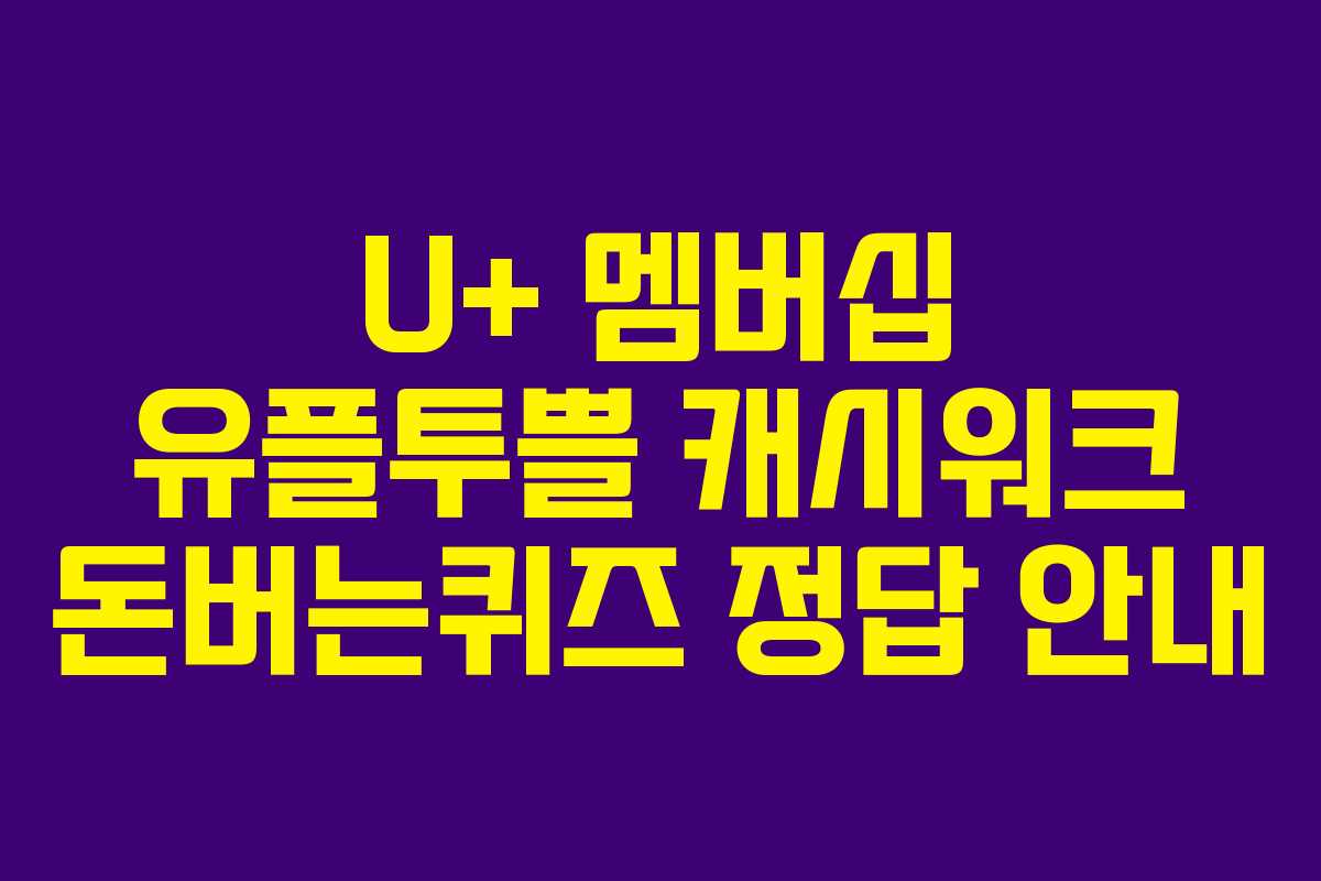 2024년 7월 26일 오후 6시에 공개된 U+ 멤버십 유플투쁠 캐시워크 돈버는퀴즈에 대한 정보를 안내드립니다. 이번 퀴즈는 다양한 혜택을 제공하는 모바일 멤버십 앱인 유플투쁠과 관련된 내용으로 구성되어 있습니다. 참여하시면 포인트 적립의 기회를 얻을 수 있으니 많은 관심 바랍니다.